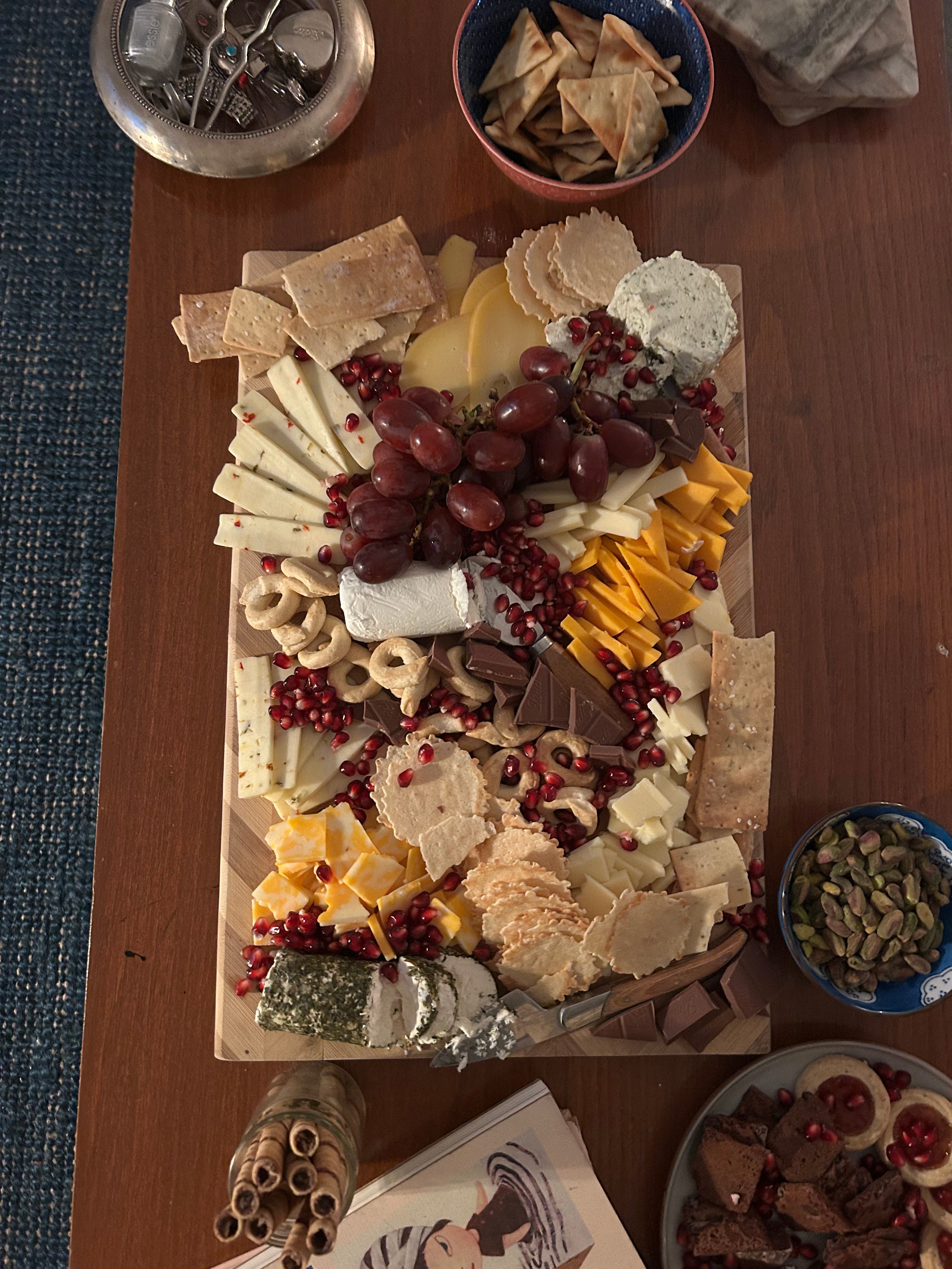 One of my friends hosts parties with the most elaborate and beautiful charcuterie boards I’ve ever seen, so I always associate this time of year with being around friends, eating good food, and spending time on things that show how much you care about the people around you. I would ask for an endless supply of those cheeseboards if I could, but for now, I’ll satisfy myself by making my own version for people who come to hang out. I am always on the lookout for any kind of artisan charcuterie slab to gift my friend who puts them together.